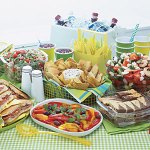 She cautions against “messy” dishes and those that include mayonnaise (or other dairy products) because they tend to spoil easily in hot weather and suggests mayo packets instead.  Packets are also a good idea for toting other condiments including ketchup, relish, salt, and pepper.